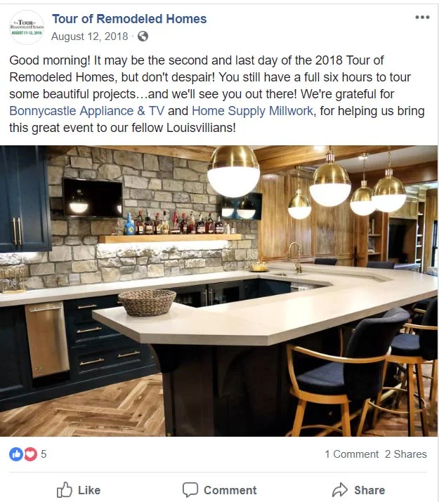 Facebook post for the Tour of Remodeled Homes. Created as Director of Communications for the Building Association of Greater Louisville.